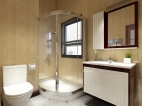 造型簡潔的洗手臺、清新淡雅的瓷磚顏色,極富現代簡約氣息。