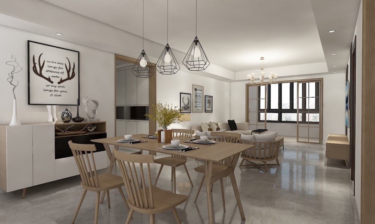 每個空間至少2張效果圖+1張全案全景圖展示,方案描述完整,所有空間需命名。