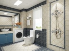 地中海衛(wèi)生間巧妙的綜合利用了有質(zhì)感的裝飾材質(zhì)和柔和明媚的色彩,展現(xiàn)出濃郁的海洋風(fēng)情,將衛(wèi)生間構(gòu)建一個(gè)浪漫、活潑、有靈氣的居室空間。