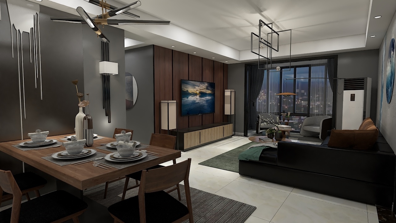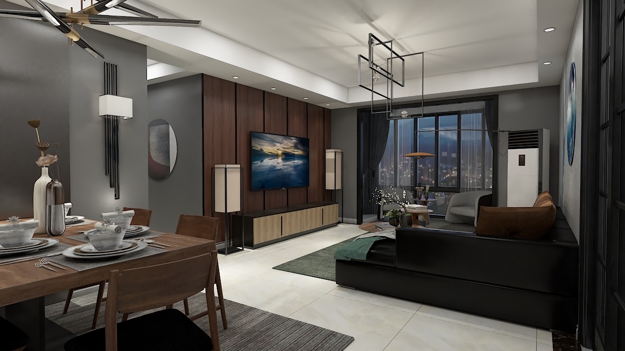 每個空間至少2張效果圖+1張全案全景圖展示,方案描述完整,所有空間需命名。