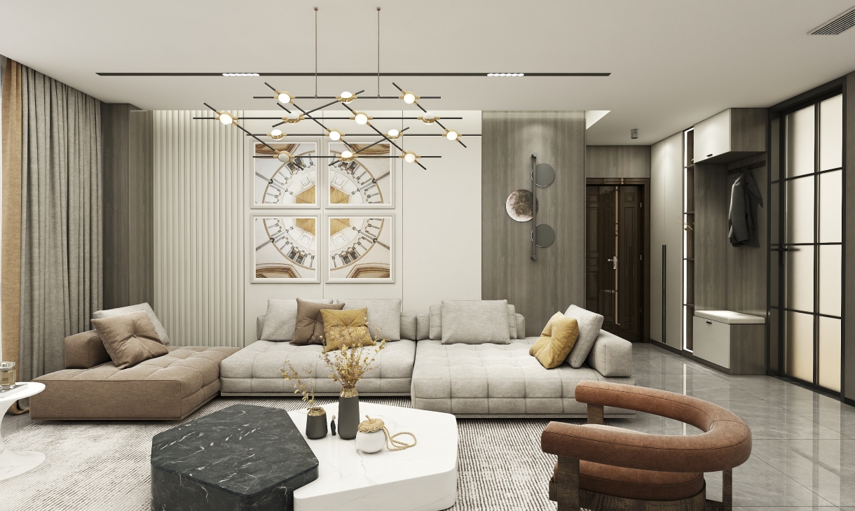 每個空間至少2張效果圖+1張全案全景圖展示,方案描述完整,所有空間需命名。