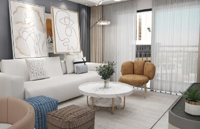 每個空間至少2張效果圖+1張全案全景圖展示,方案描述完整,所有空間需命名。