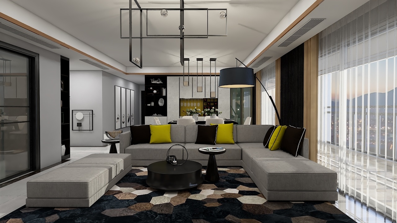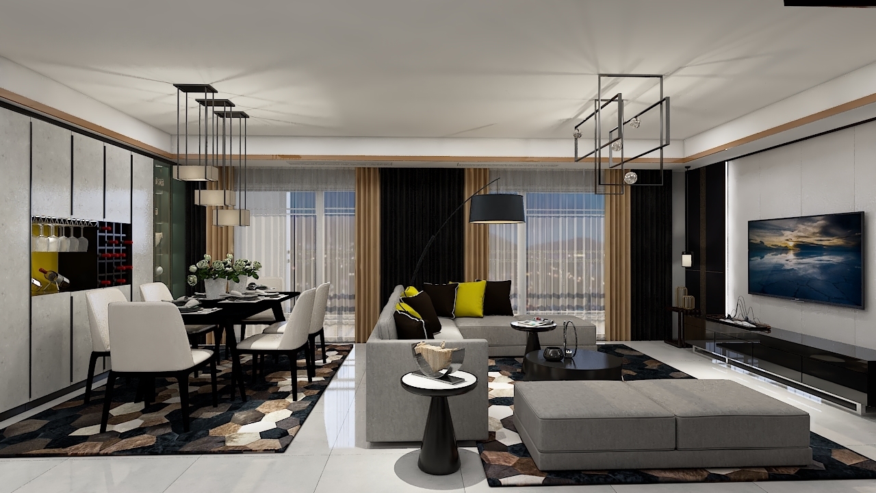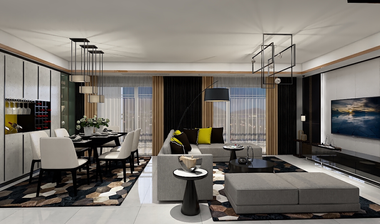 每個空間至少2張效果圖+1張全案全景圖展示,方案描述完整,所有空間需命名。