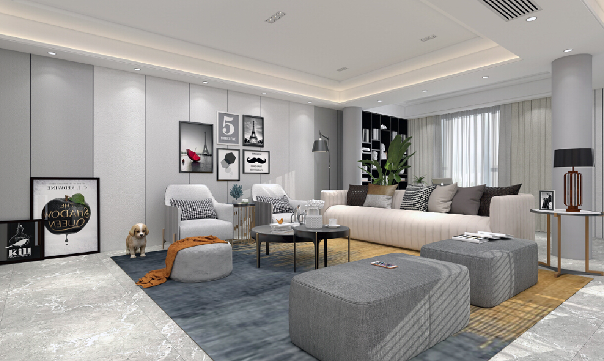 簡約俐落的金屬質材鋪敘與敞明大方的格局尺度在案例中設計師以陳設藝術品及線條材質吊頂錯落層次來營造大氣、自然、輕奢的裝飾美學氛圍。墻面、地面、家具陳設等均以簡潔的造型、精細的工藝為其特征,強調品質感和細節處理。在色彩搭配方面以冷暖色為主,溫馨的客桌花束、直觀大氣帶著淡淡的隨意,隨著輕輕的希冀讓人感受到的是空間彌漫的溫馨與舒暢。