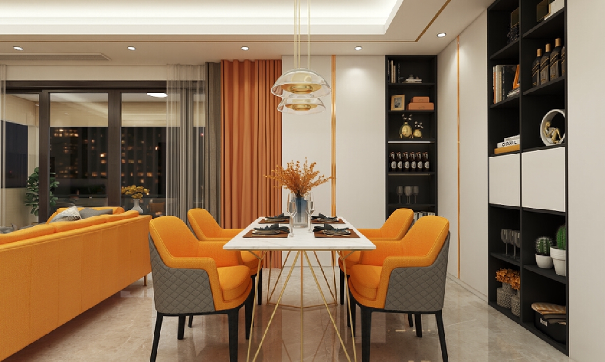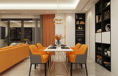 業主李小姐是一個精致的女士,她喜歡奢華的酒店風格、金屬質感的東西,喜歡Blingbling的感覺。所以我們選擇了可以代表奢華的代名詞。愛馬仕堪稱奢侈品中的貴族,代表著潮流時尚。愛馬仕橙在居室中的運用,將奢華氛圍帶入。它,符合人們對現代生活的審美需求,其艷麗張揚、經典時尚的標簽,成為永恒不變的奢侈品味,陪你奢華過一生。