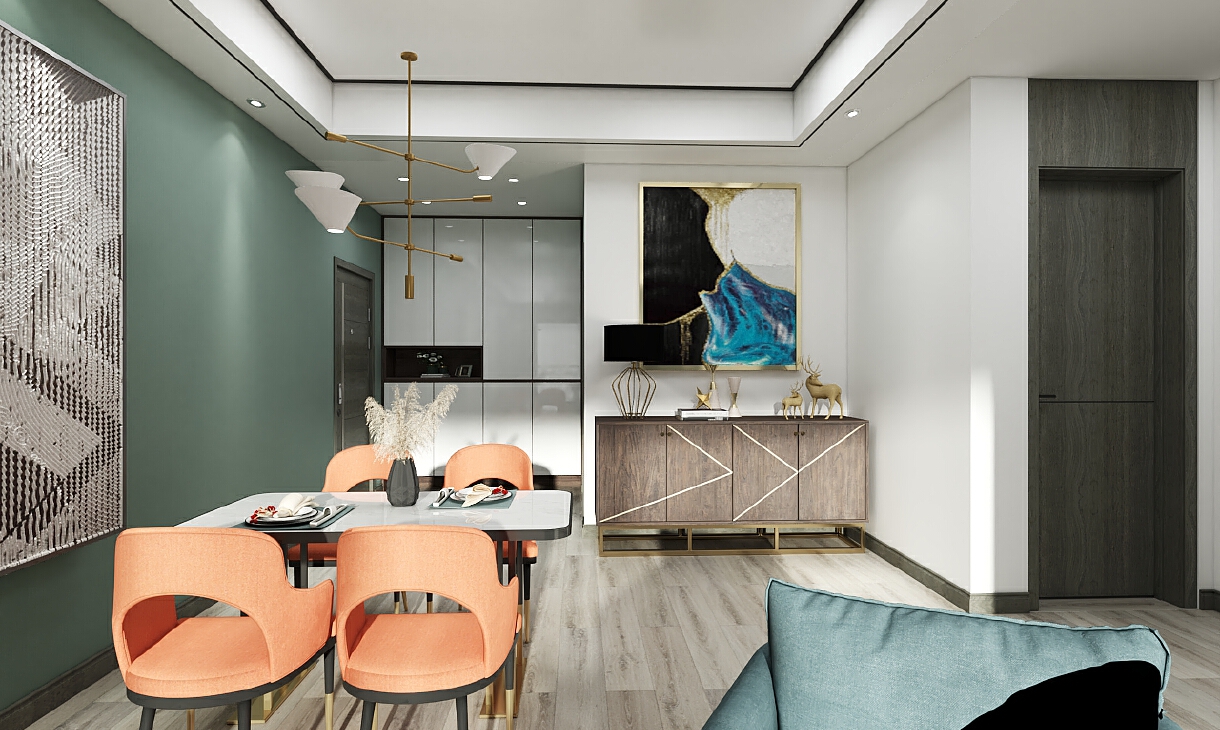 每個空間至少2張效果圖+1張全案全景圖展示,方案描述完整,所有空間需命名。