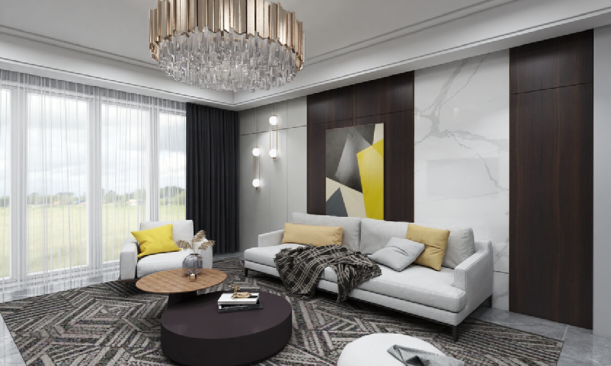 深胡桃色搭配伯爵金線條,打造輕奢空間