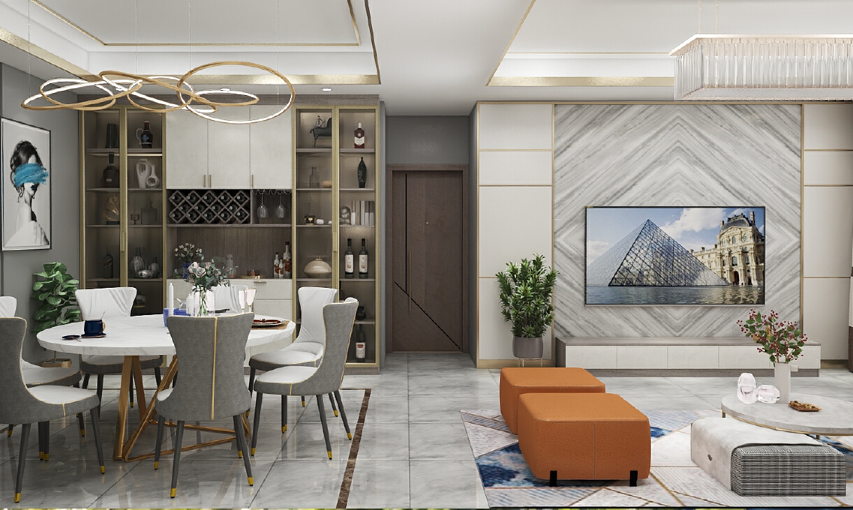 每個空間至少2張效果圖+1張全案全景圖展示,方案描述完整,所有空間需命名。