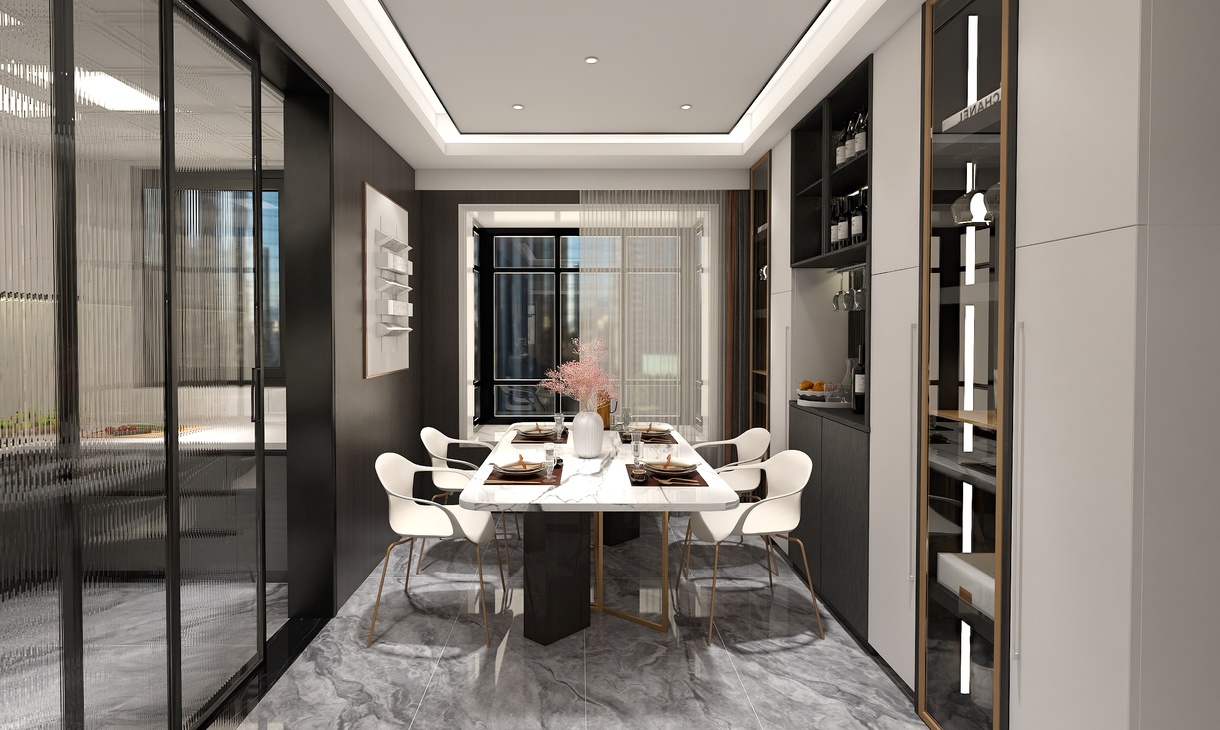 本案的設計風格為現(xiàn)代簡約風格,整體色彩為冷。經(jīng)典色系的玄關空間,既走簡約輕快的現(xiàn)代風,還能體現(xiàn)屋主對生活的品質與要求。