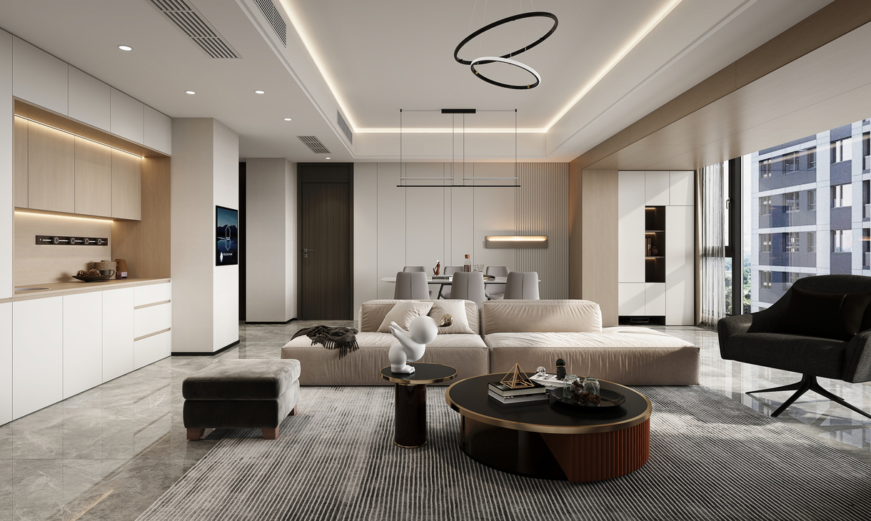 每個空間至少2張效果圖+1張全案全景圖展示,方案描述完整,所有空間需命名。