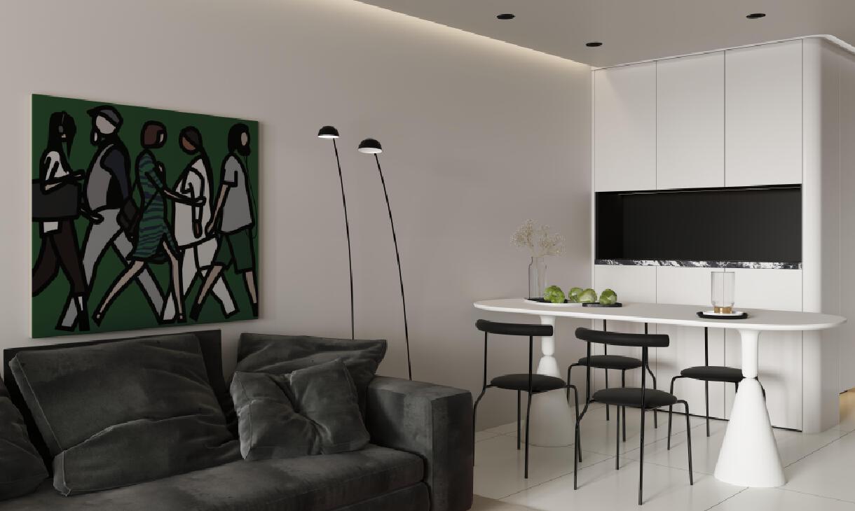 極致的白&小面積黑色點綴 客戶是小一對小年輕,要求空間顯得通透,但不要顯得太“蒼白”。 在黑色里溫柔地愛彩色,在彩色里朝圣黑白。 效果圖合作:+v18844971014