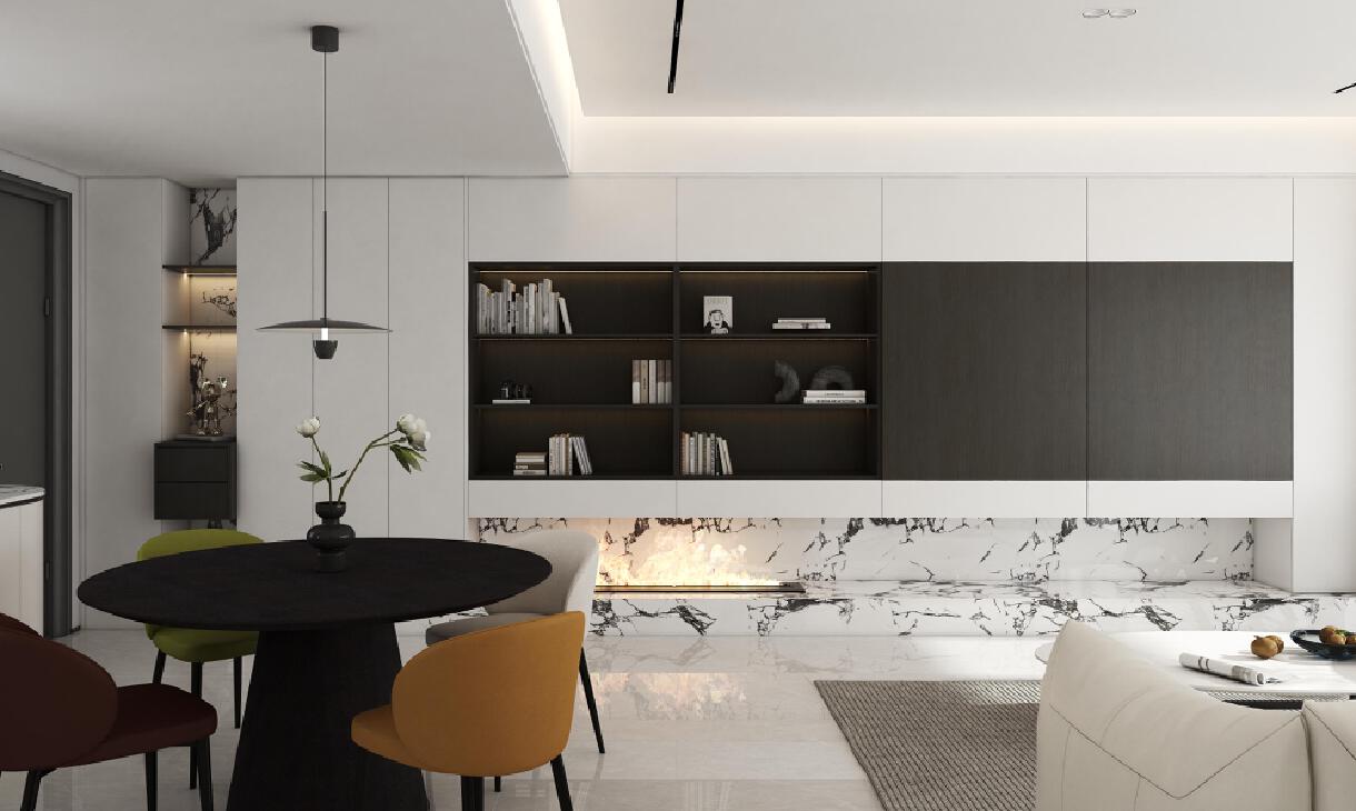 在極具秩序感的現(xiàn)代極簡(jiǎn)風(fēng)格中增加一些舒適愜意的松弛感,井然有序,張弛有度