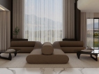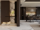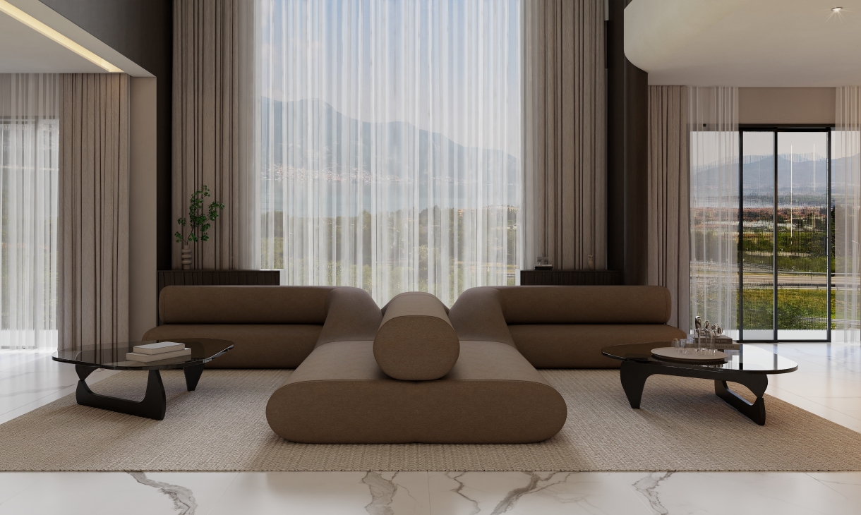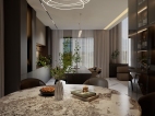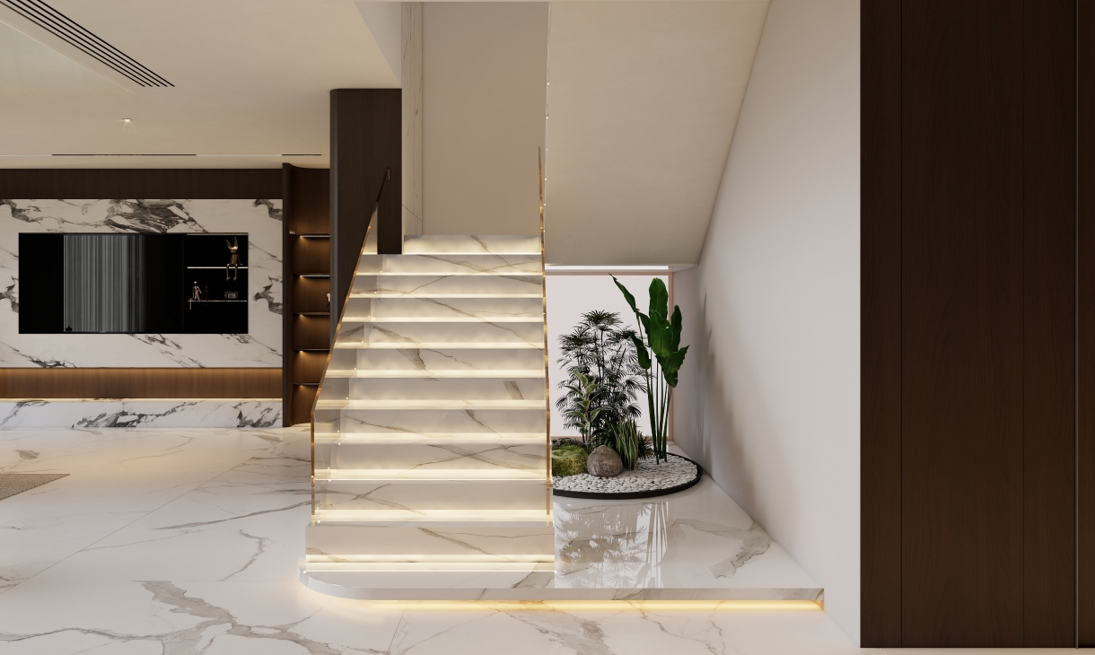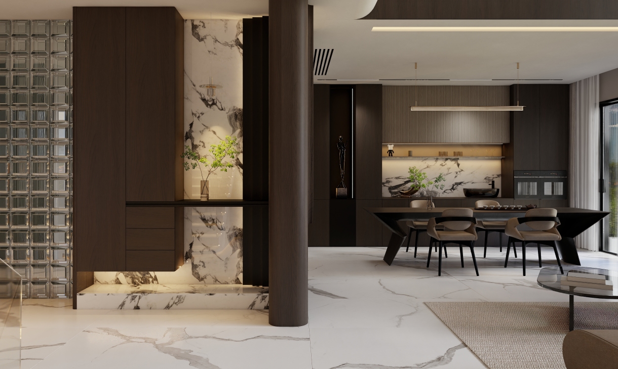 以“少即是多”為哲學,用干凈線條、自然材質(zhì)(與中性色調(diào),構建克制冷感的空間。打光以一盞主光源穿透整個空間,且讓窗口不過曝,加上“青光源光板”還原自然寫實光源。原片直出,效率談單。
