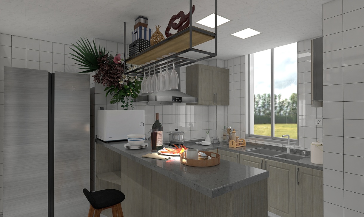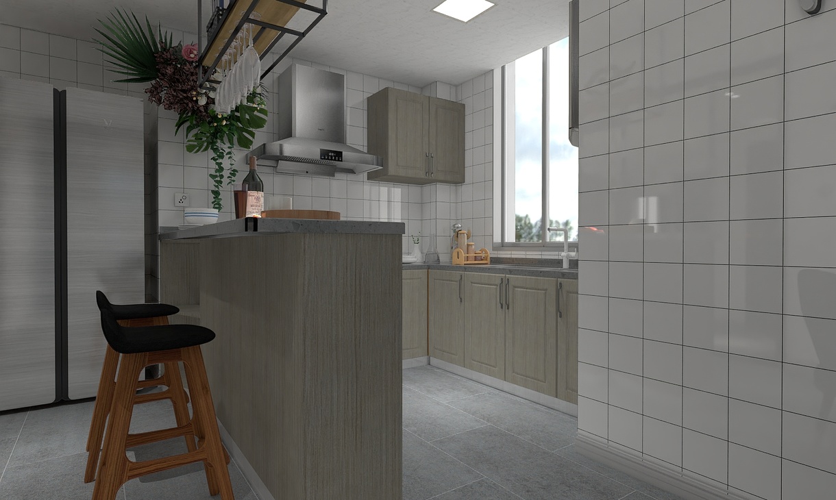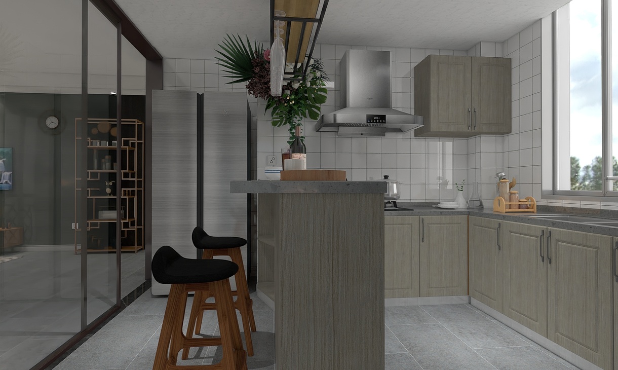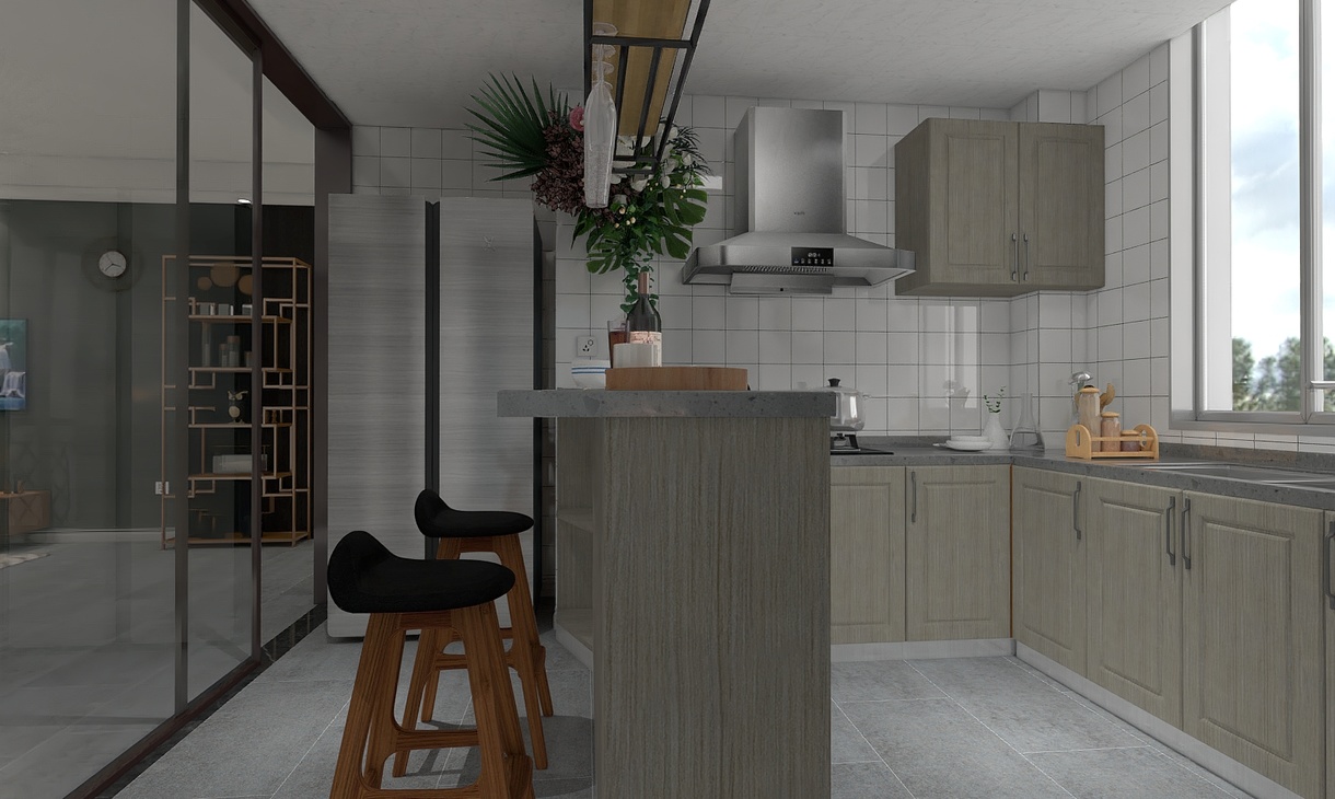 廚房是改造過(guò)的,將廚房旁邊單獨(dú)的小房間打通作為小餐廳,合理的利用空間,使原本小小客廳空間變的獨(dú)立開(kāi)闊,