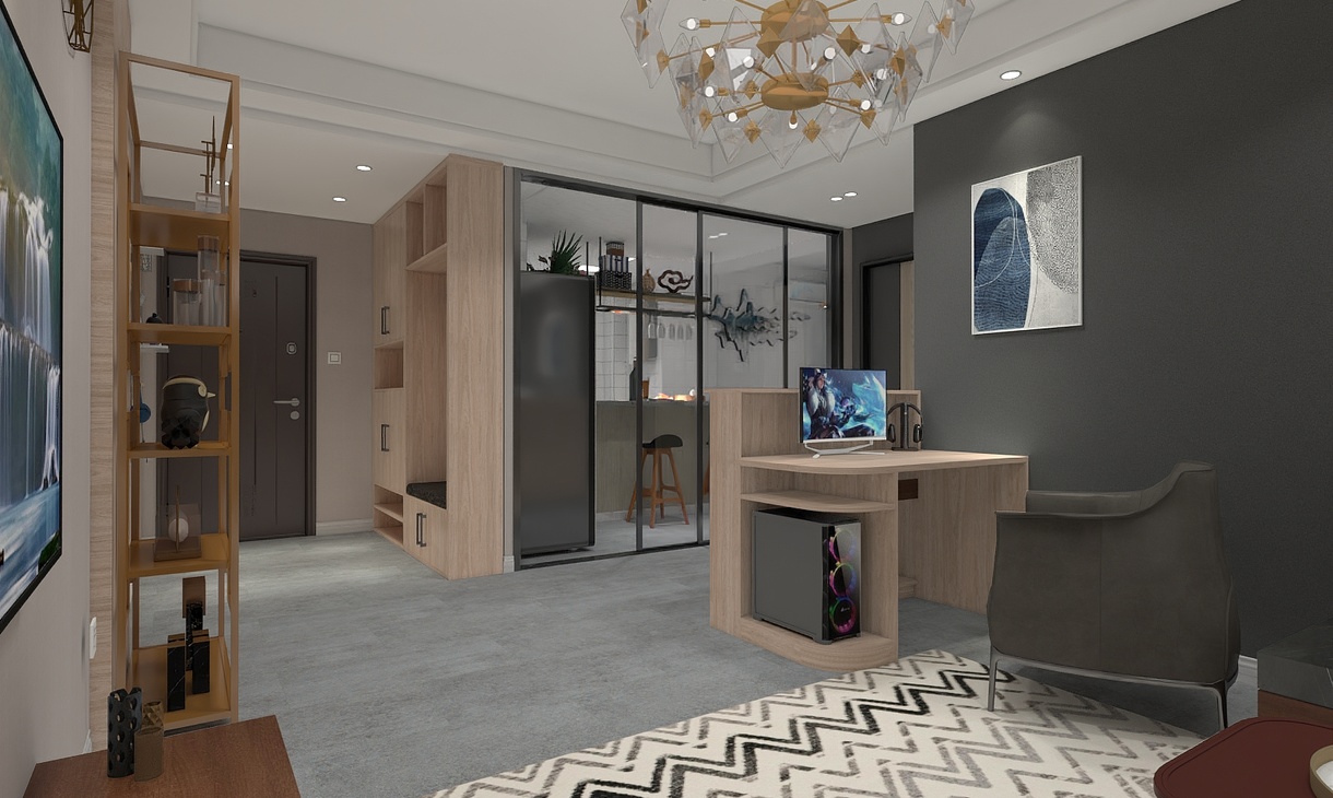 業(yè)主喜歡在客廳放個(gè)電腦桌