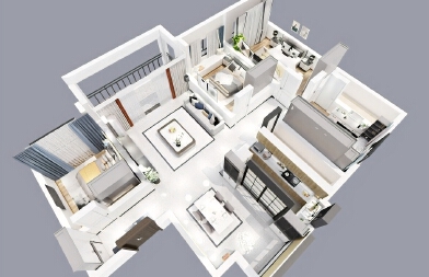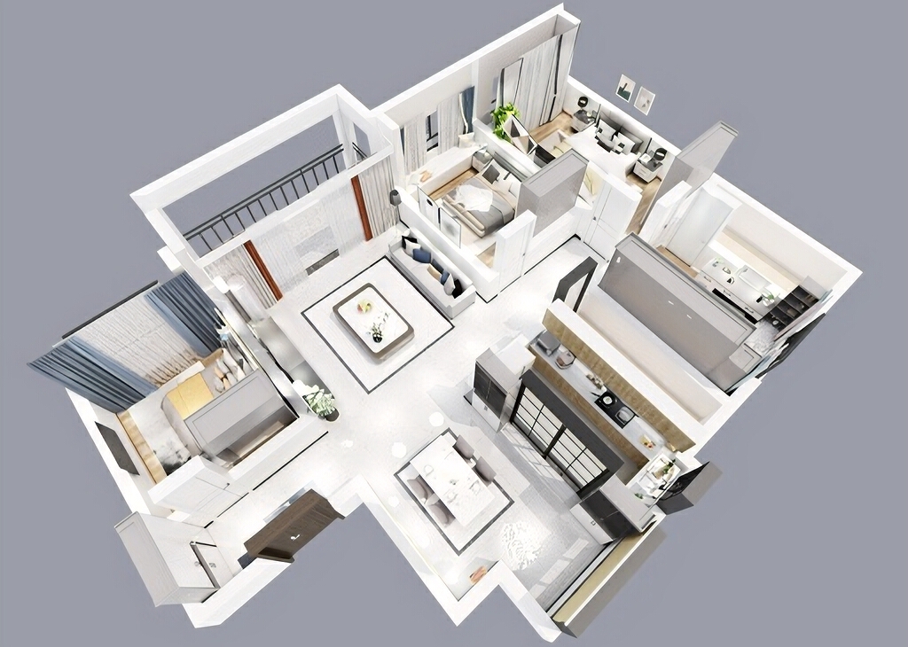 每個空間至少2張效果圖+1張全案全景圖展示,方案描述完整,所有空間需命名。