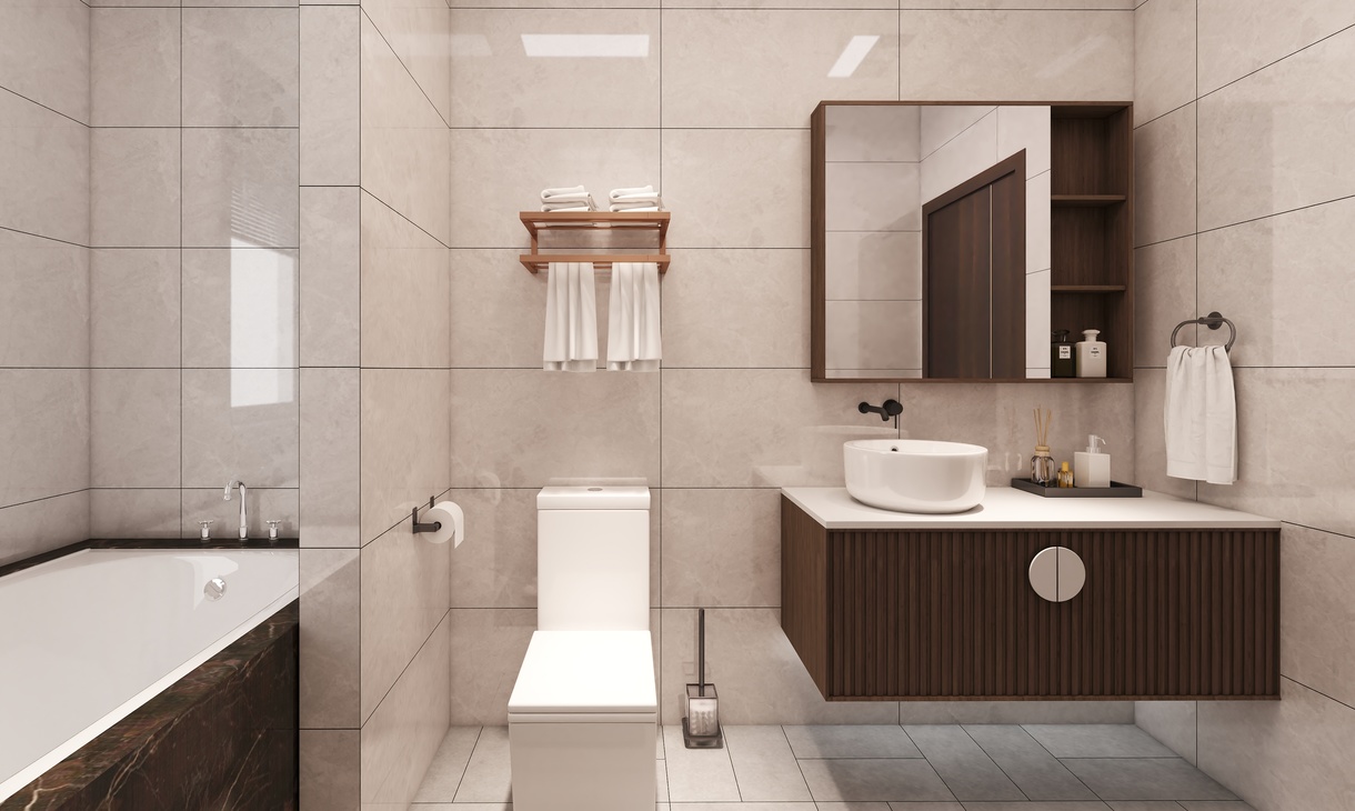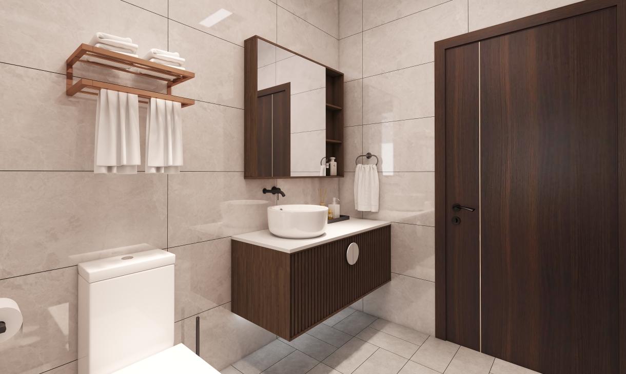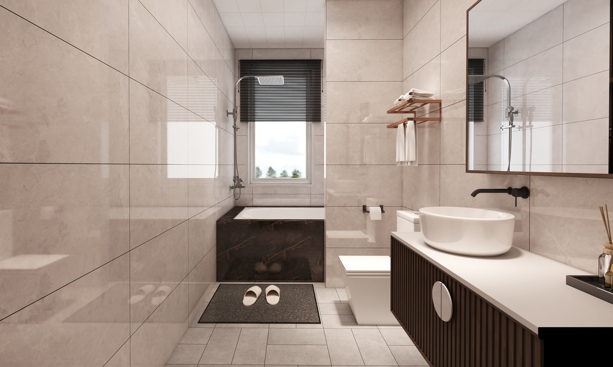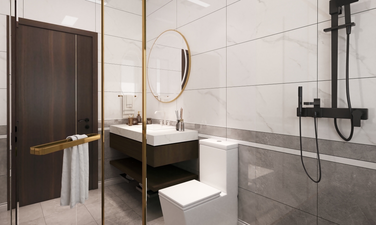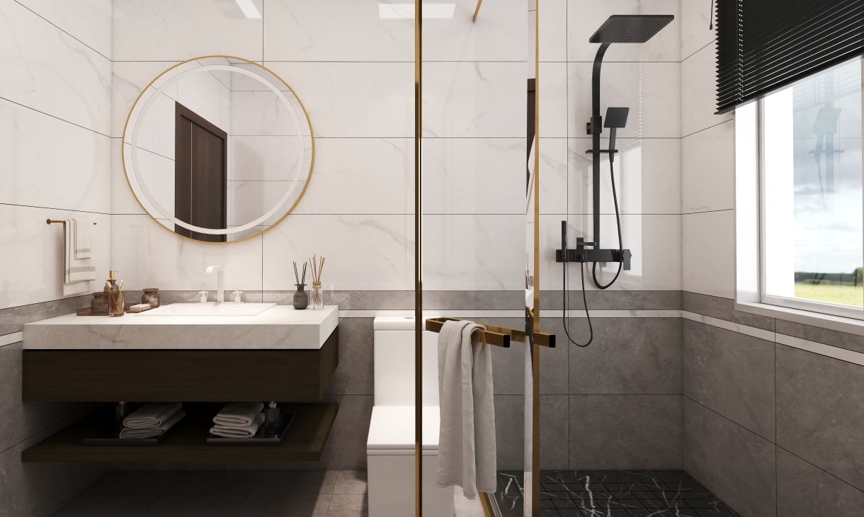 干濕分區(qū),淋浴洗漱分開。與整體風(fēng)格一致