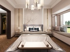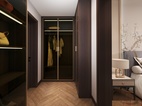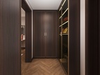 主臥套房打造具有獨立衣帽間,步入式衣帽間收納系統(tǒng)的整體功能。體現(xiàn)高品質(zhì)生活。紅藍搭配點綴金屬,既能與整體空間呼應(yīng),又符合業(yè)主的氣質(zhì)