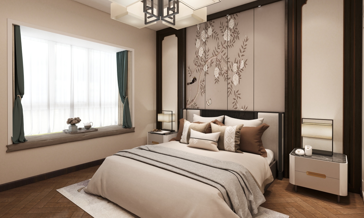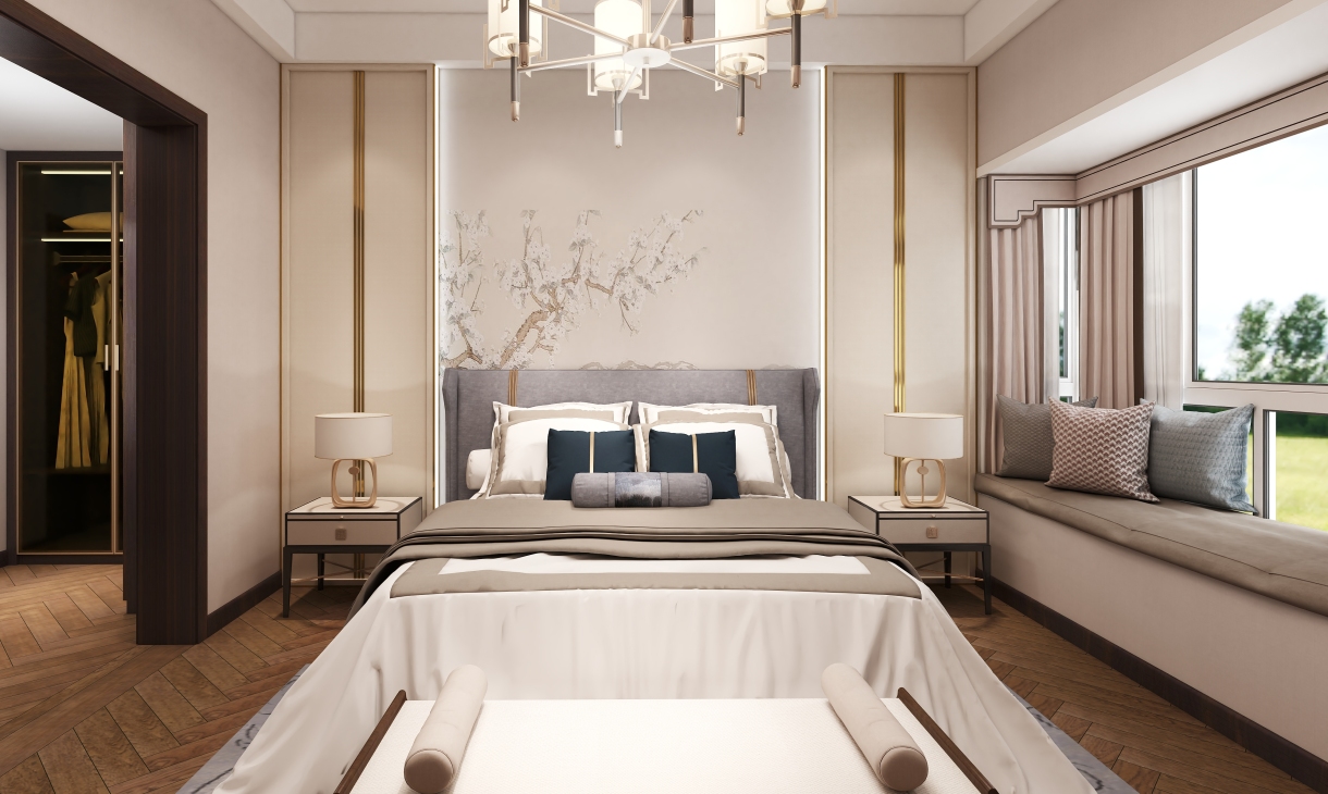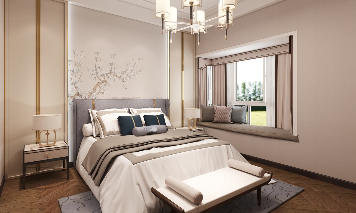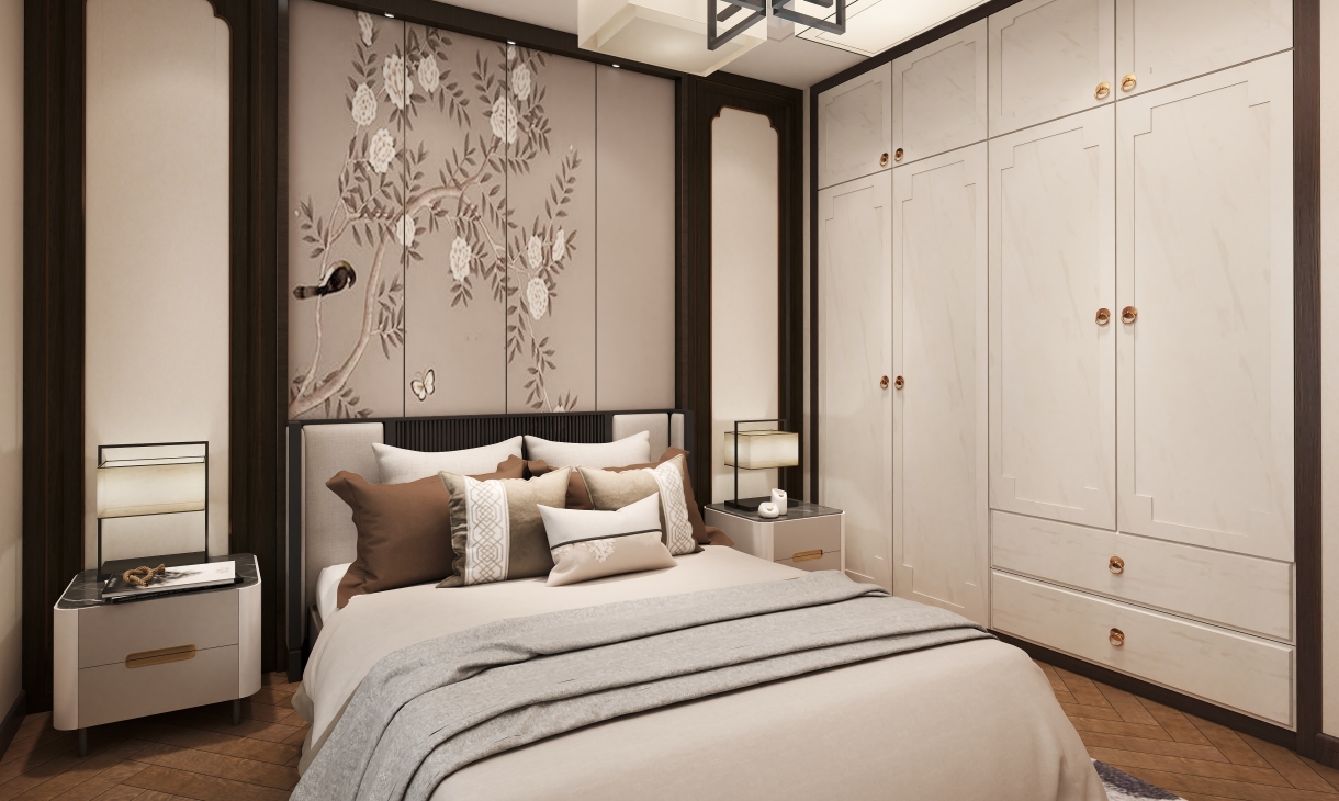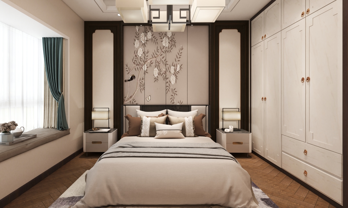 客臥為來照顧寶寶的父母準(zhǔn)備,作為長輩房。以實用為主,配色沉穩(wěn)大氣溫馨。