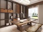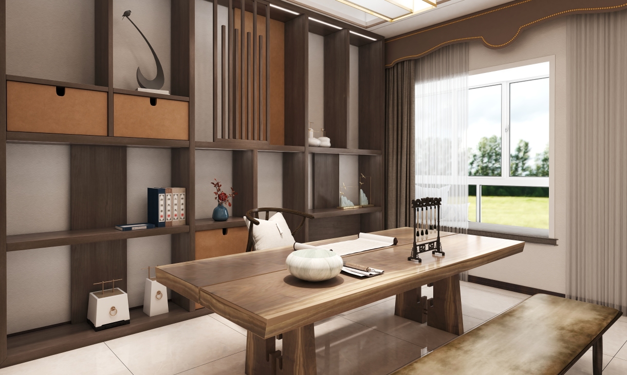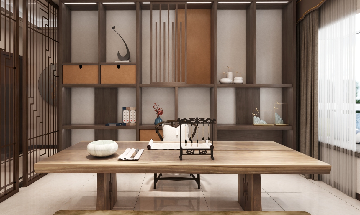 在客廳空間劃分出半開放書房,為男主預(yù)留辦公區(qū)域。同時也可作為會客區(qū),品茶聊天
