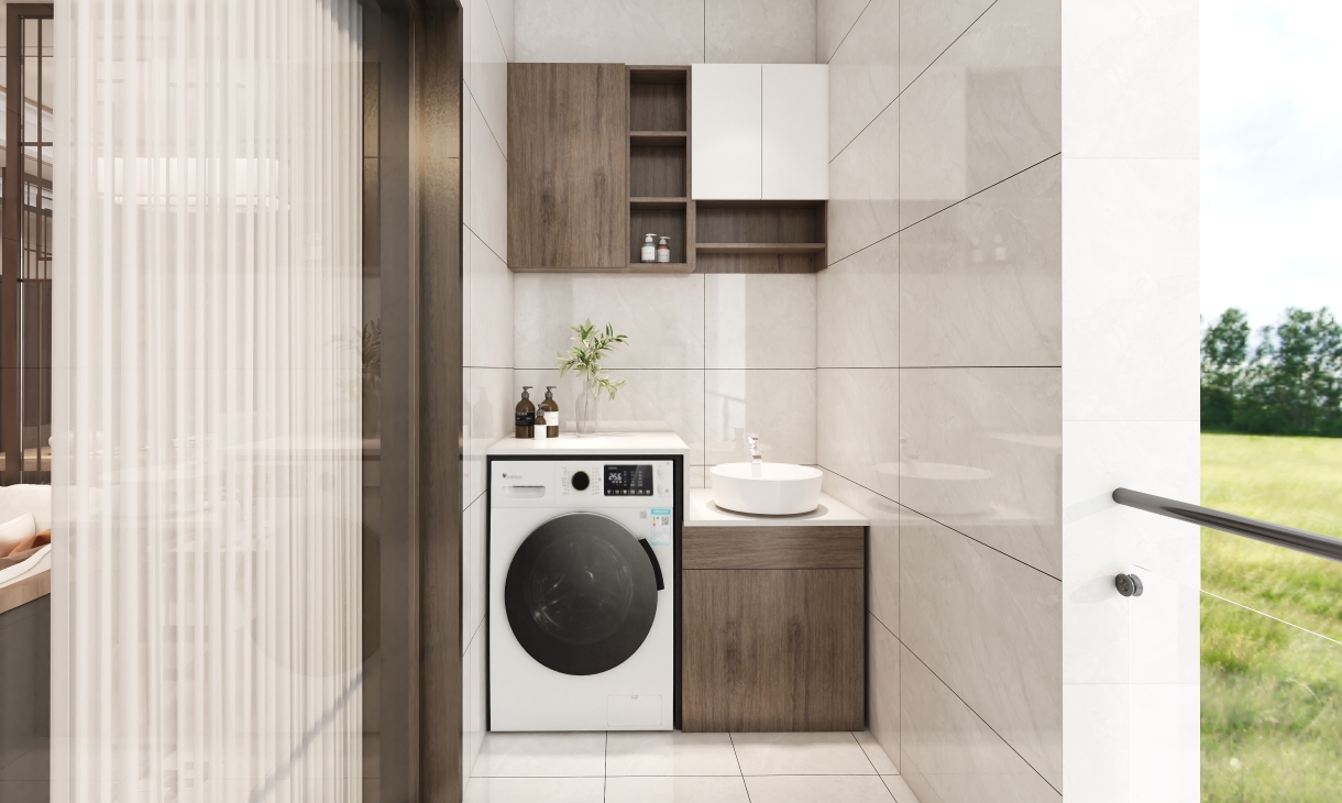 保留開放陽臺,綠植花卉能很好生長。放置洗衣機柜,方便衣物的洗護晾曬,灑滿陽光的味道。