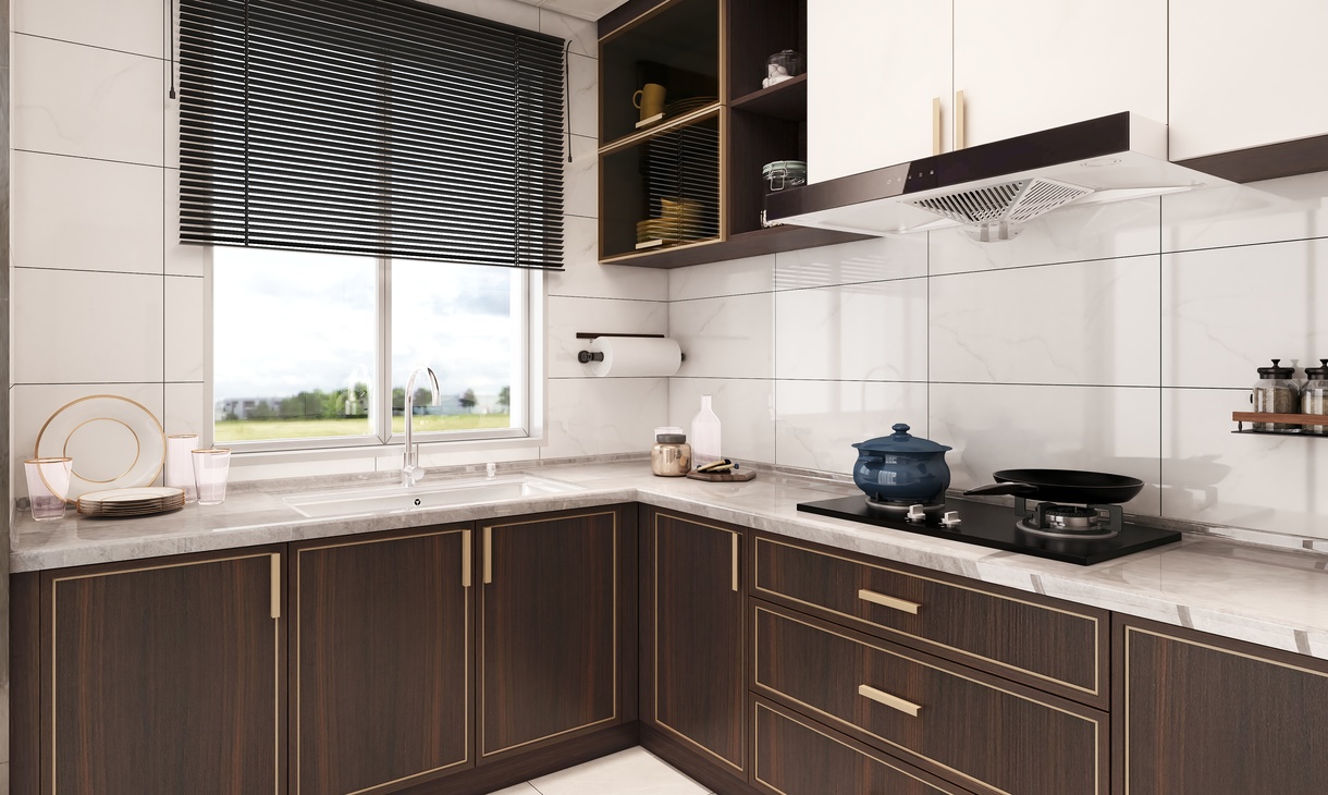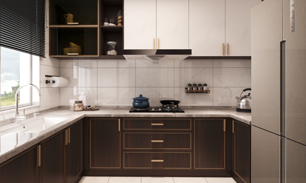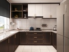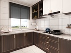 胡桃木櫥柜,搭配水墨白門板,點綴金屬元素,提升廚房整體質(zhì)感。廚房空間動線設(shè)計,方便日常烹飪。同時盡可能的增加儲物空間
