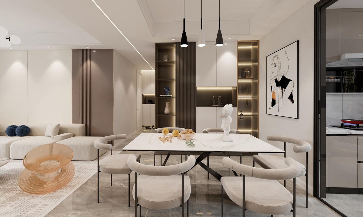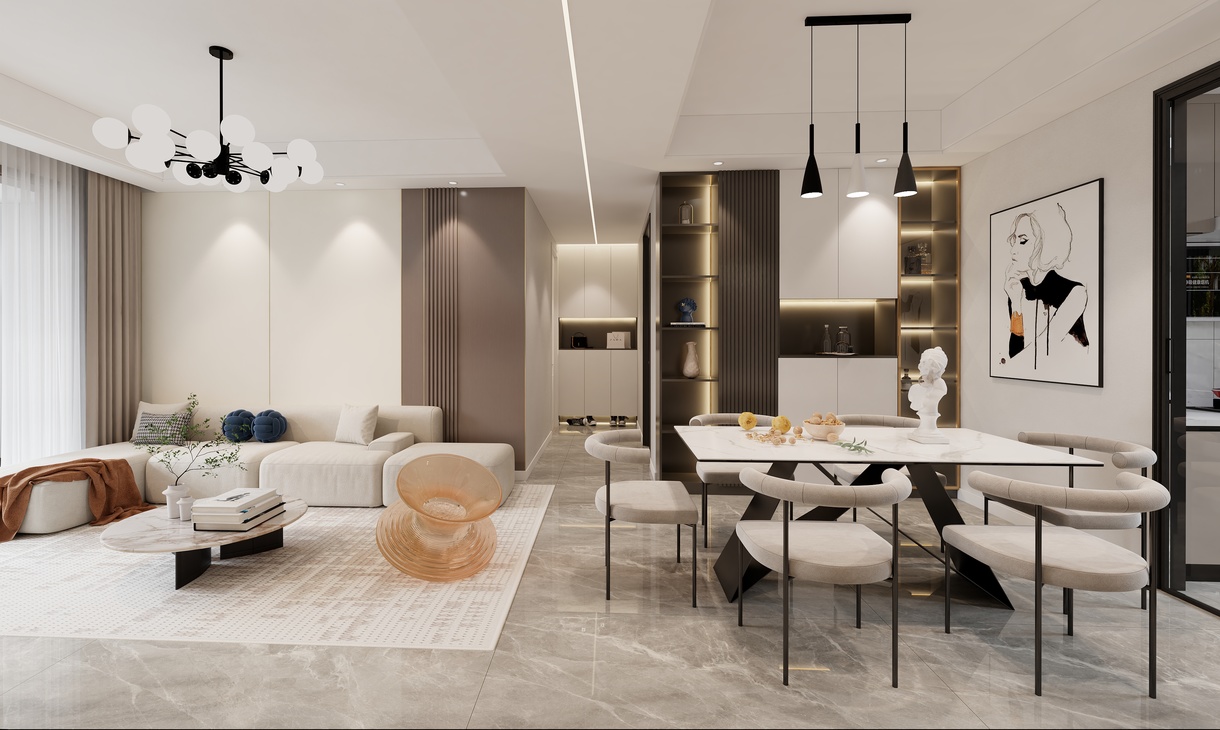 每個空間至少2張效果圖+1張全案全景圖展示,方案描述完整,所有空間需命名。