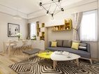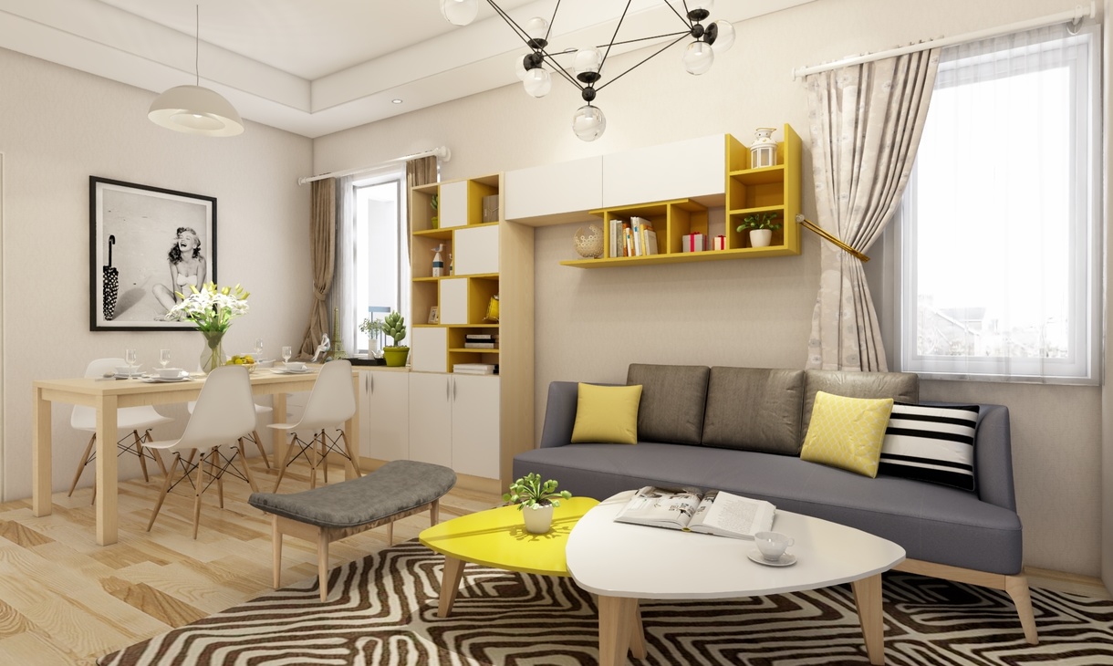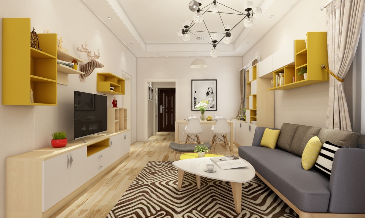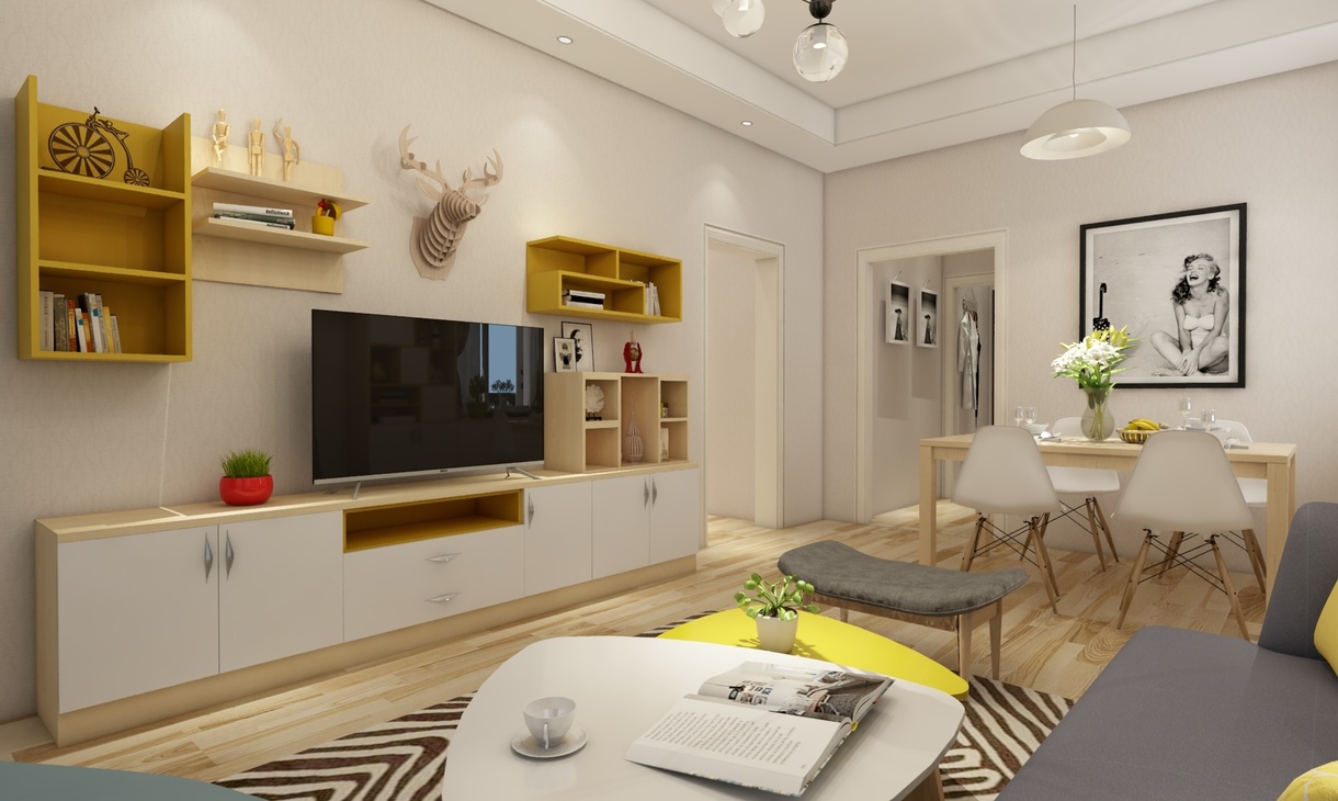 北歐風格的室內陳設上有時會采用一些靈活多變的手法。比如一些畫框組合會充滿平面設計感,而他們除了可以固定在墻上裝飾以外,還可以在裝飾柜上添加點黃色進行點綴。這樣方便放各種雜物,非常靈活,會不斷地帶來視覺寬闊。