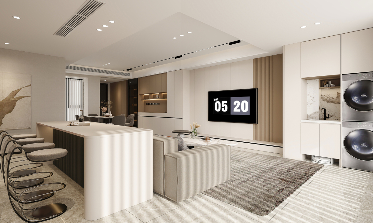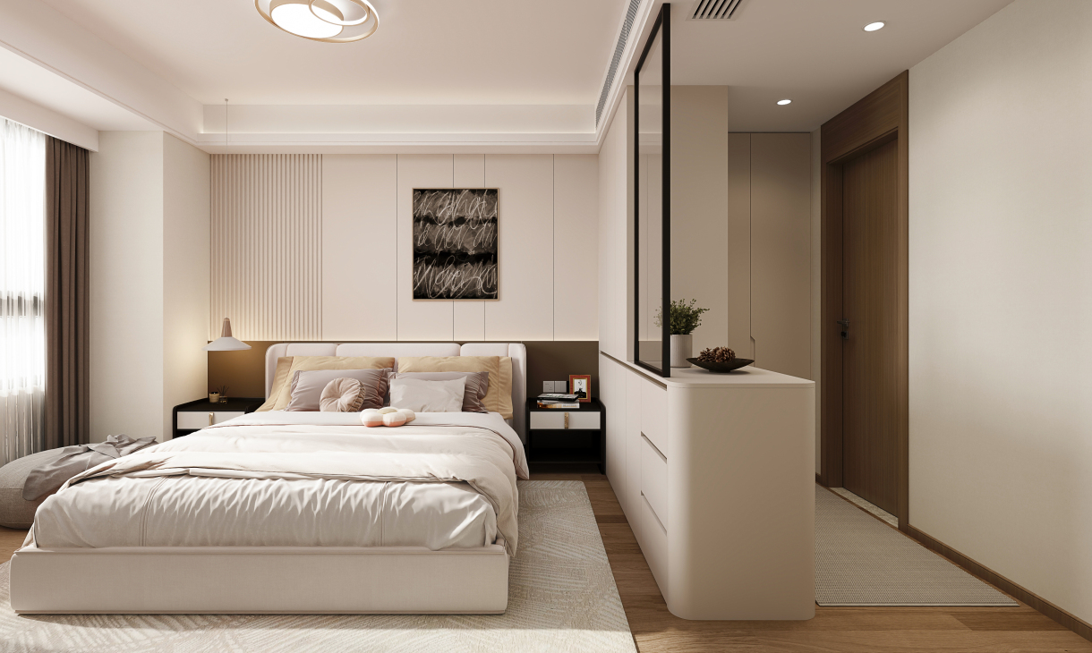 本案位于武漢城建未來中心,精裝房微改配合全屋定制項目。四房改三房,原本較窄的客廳改成了大橫廳,整體風格以現代簡約為準,加入一些奶油風元素,在裝飾上沒有做過多的堆砌,休閑之于生活,需要觸手可得的自然和美。