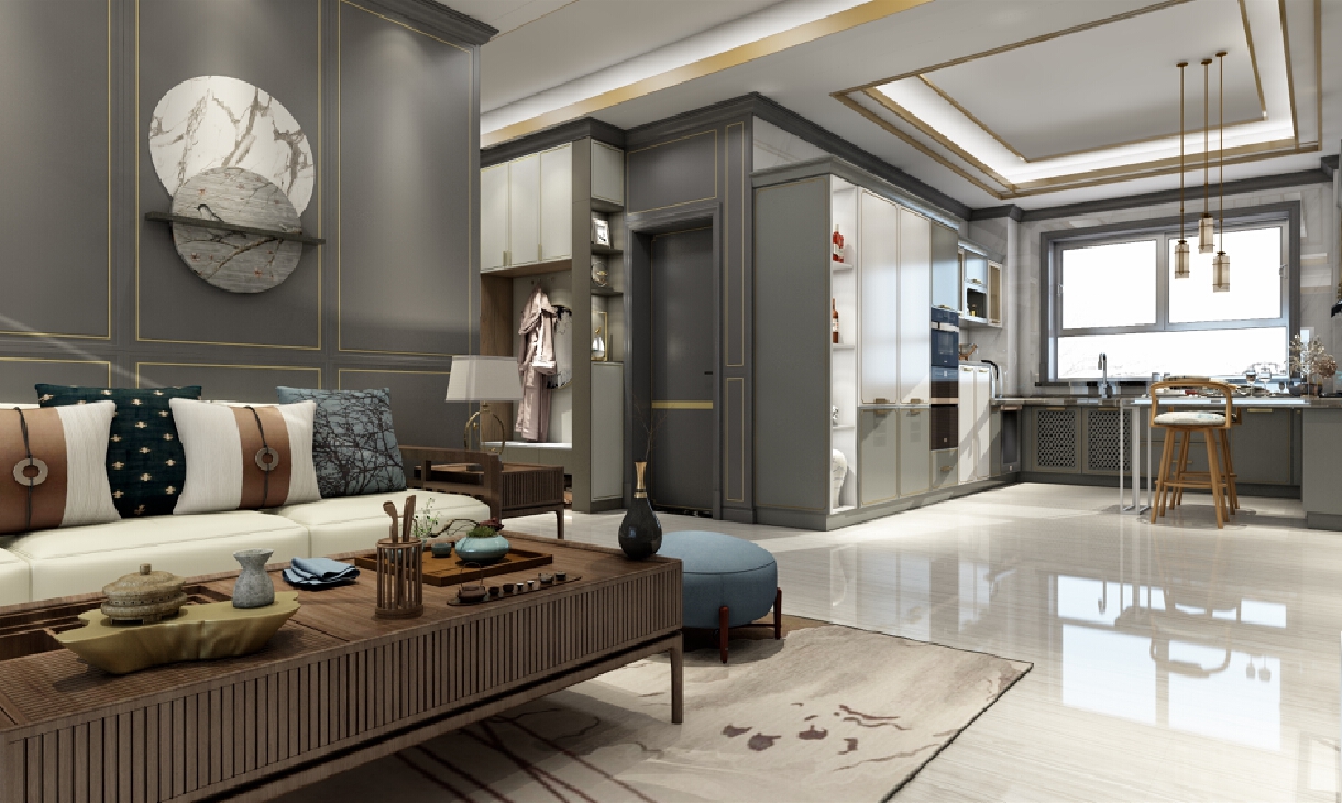 灰色亞光烤漆搭配金色線條,彰顯中式本色