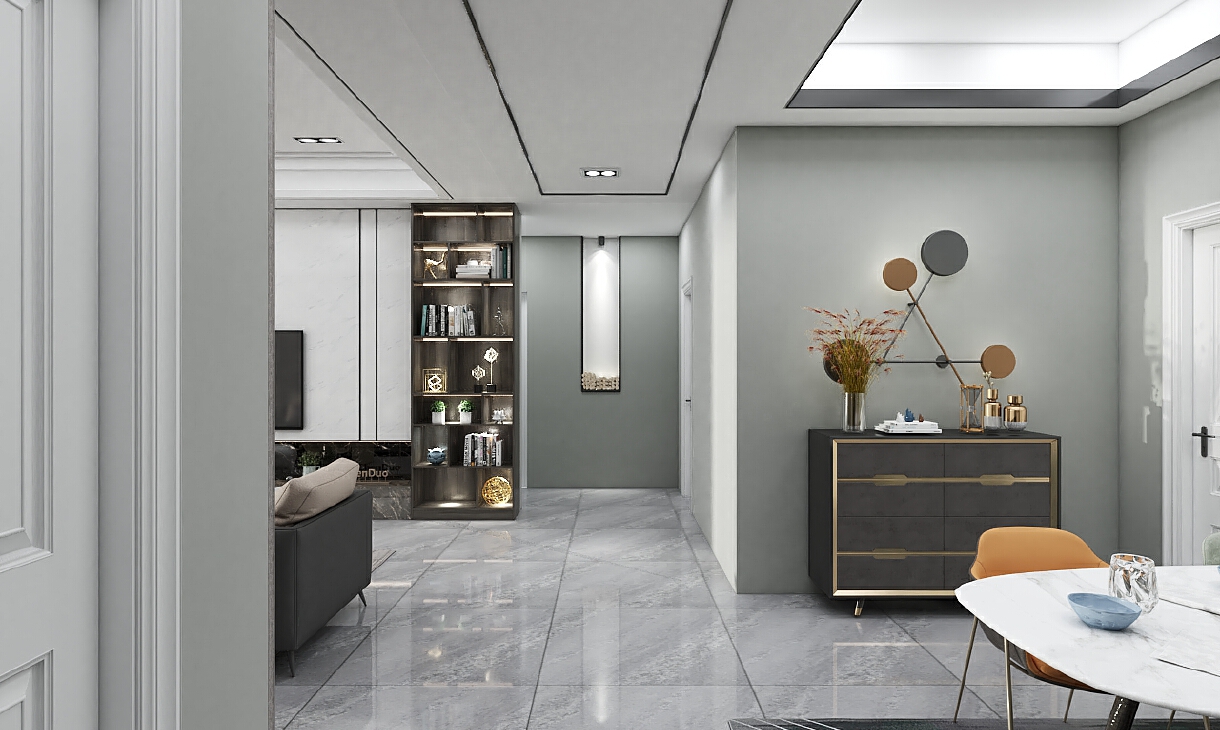 采用不失經典的黑、白、灰系作主調,描繪開闊空間,同時用溫潤質感的胡桃木營造家的溫馨與優雅。注重空間的開放、交流、互動性,在美觀性、實用性、功能性下足功夫,為未來生活做好鋪墊,精選環保材料,注重生活細節,打造了一個幸福浪漫的港灣。