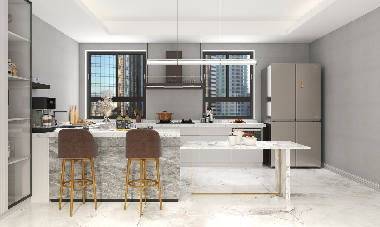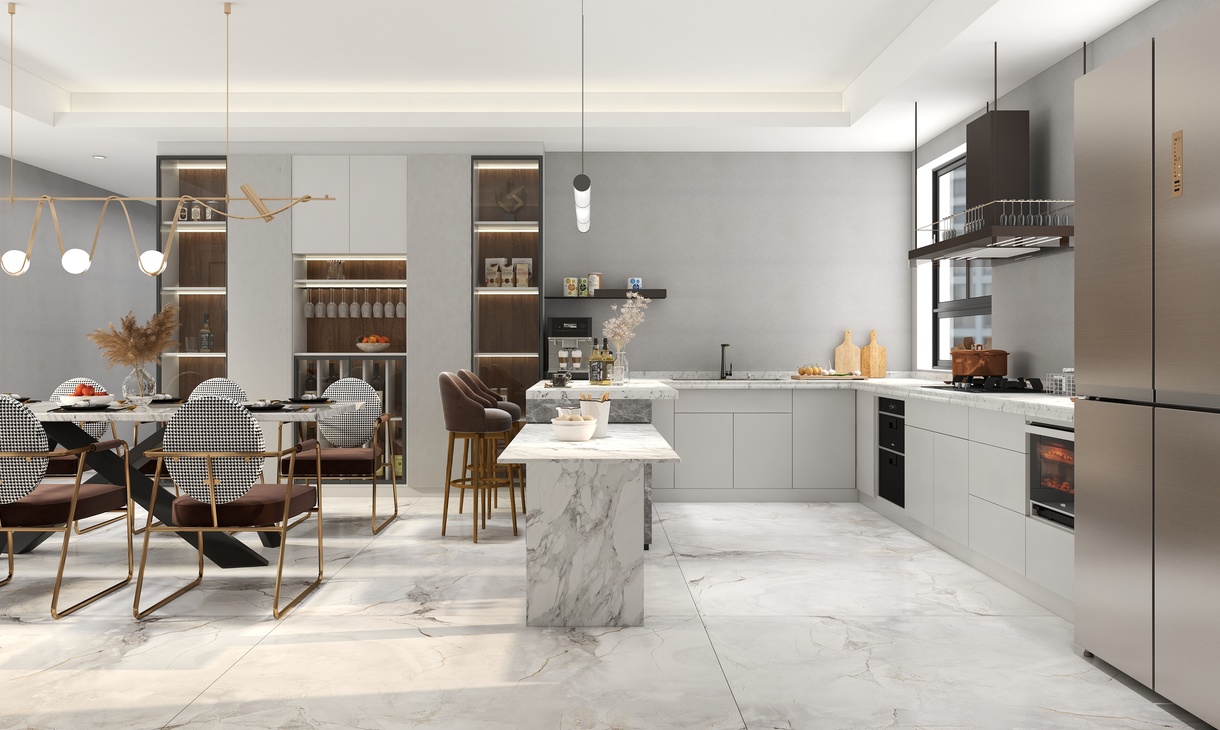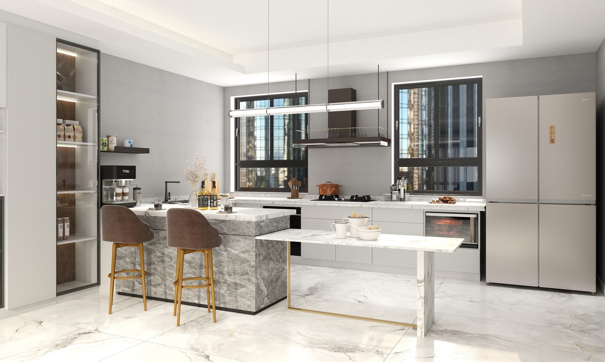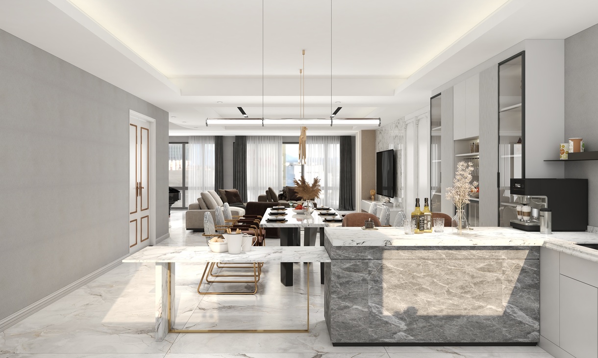 簡單但又奢華,輕柔色調的基調,以流暢的線條和高品質的材質制作出開放性廚房,為人們帶來了更舒適的生活享受。