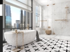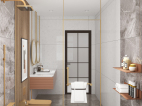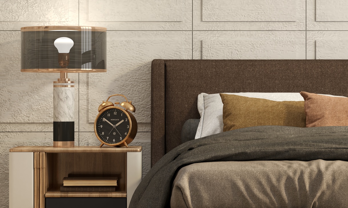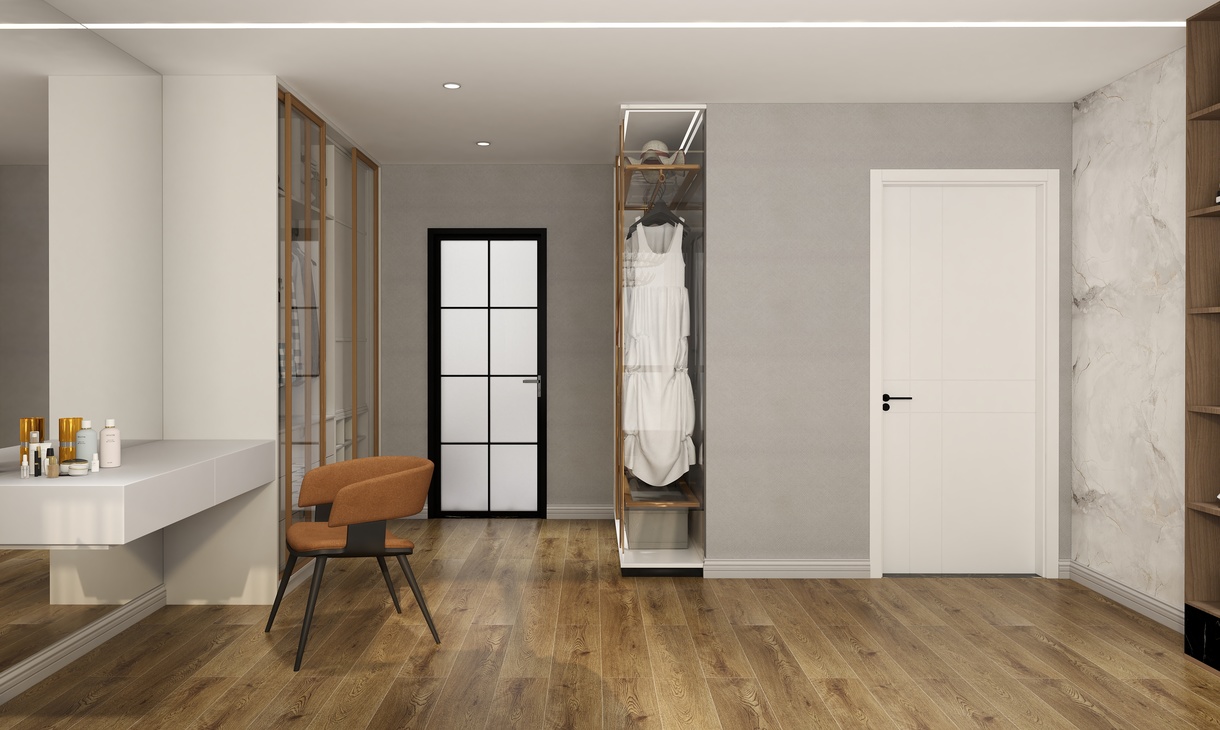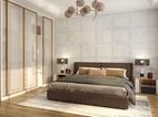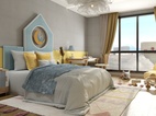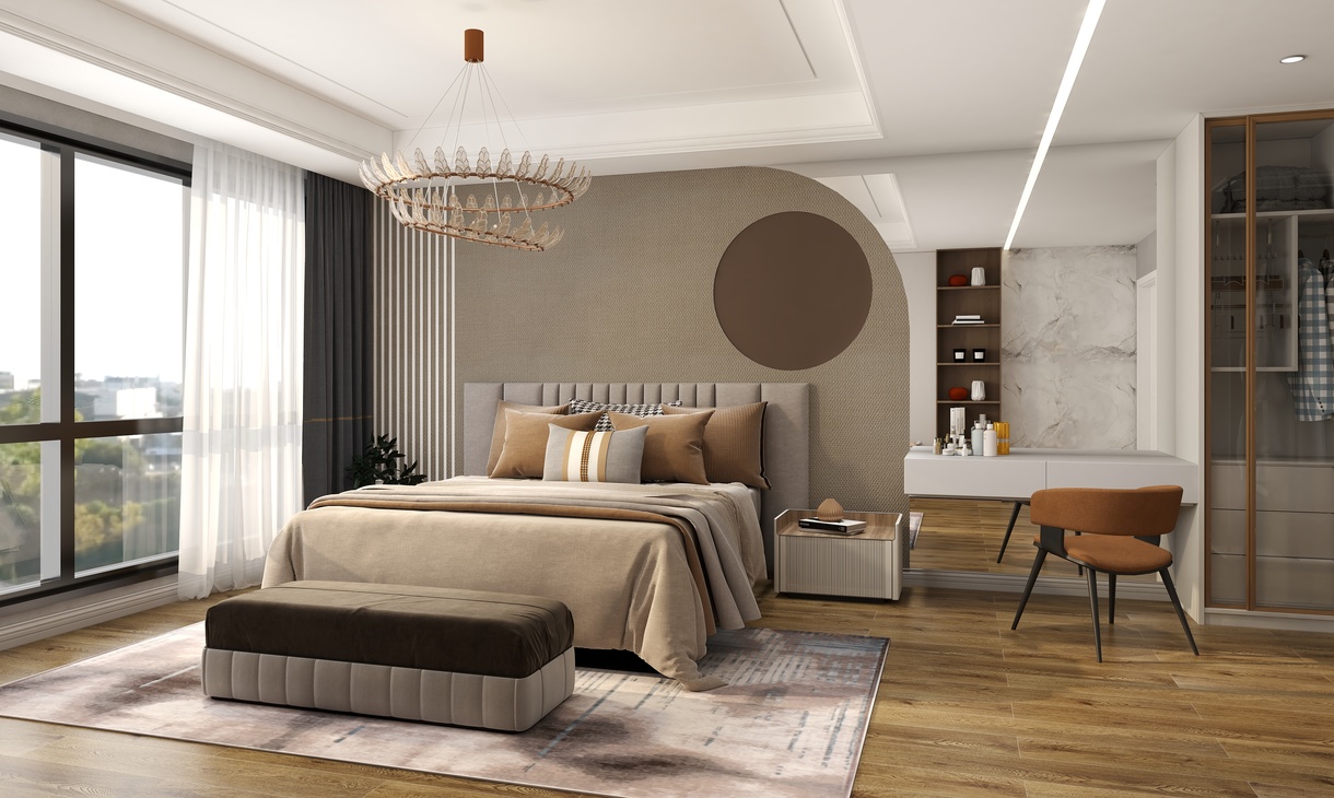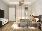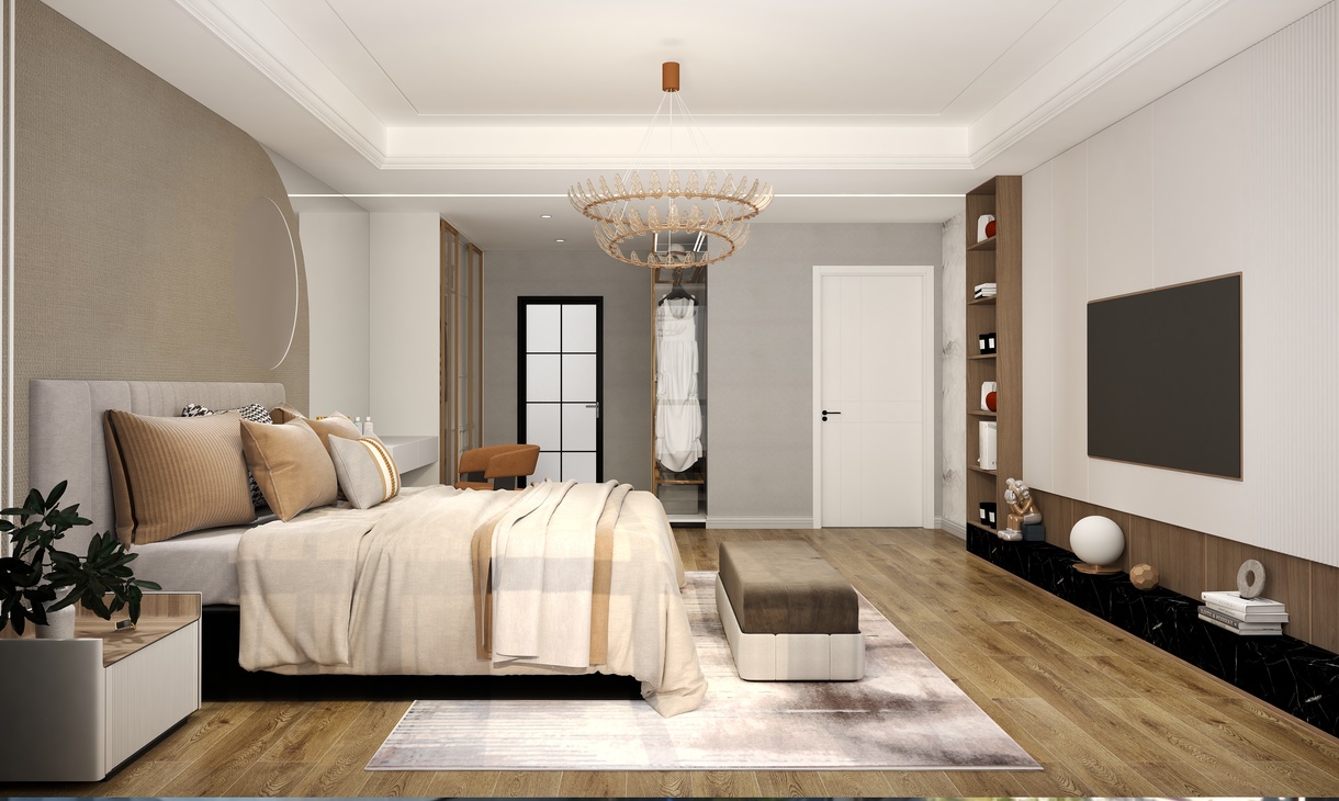 主臥有著幾何圖案的設計,再輔以深淺不一的色調的方格來構造空間,從而打造出一個極具層次感的空間,有效避免了空間的單調清冷感,演繹出滿滿優雅氣息。