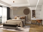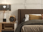 臥室空間中采用了看似深色邊框勾勒出輕盈還在線條上做了些延伸的形態,簡約時尚的家具造型與優雅神秘的色彩交相呼應,予人一種典雅婉約的輕奢舒適感。