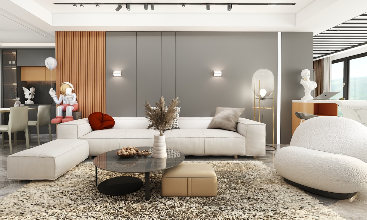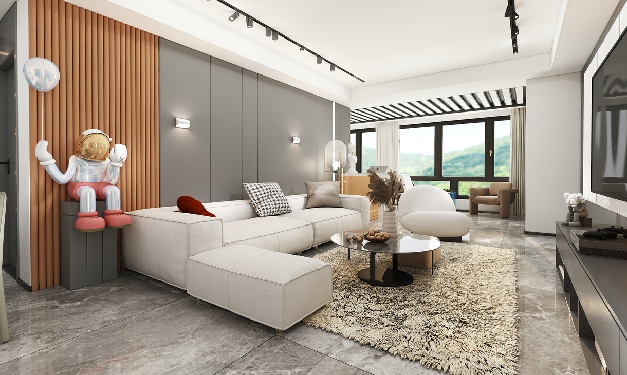 每個空間至少2張效果圖+1張全案全景圖展示,方案描述完整,所有空間需命名。