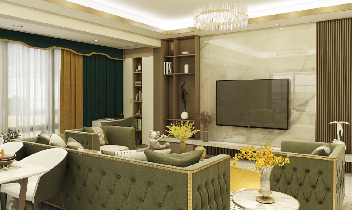 每個空間至少2張效果圖+1張全案全景圖展示,方案描述完整,所有空間需命名。