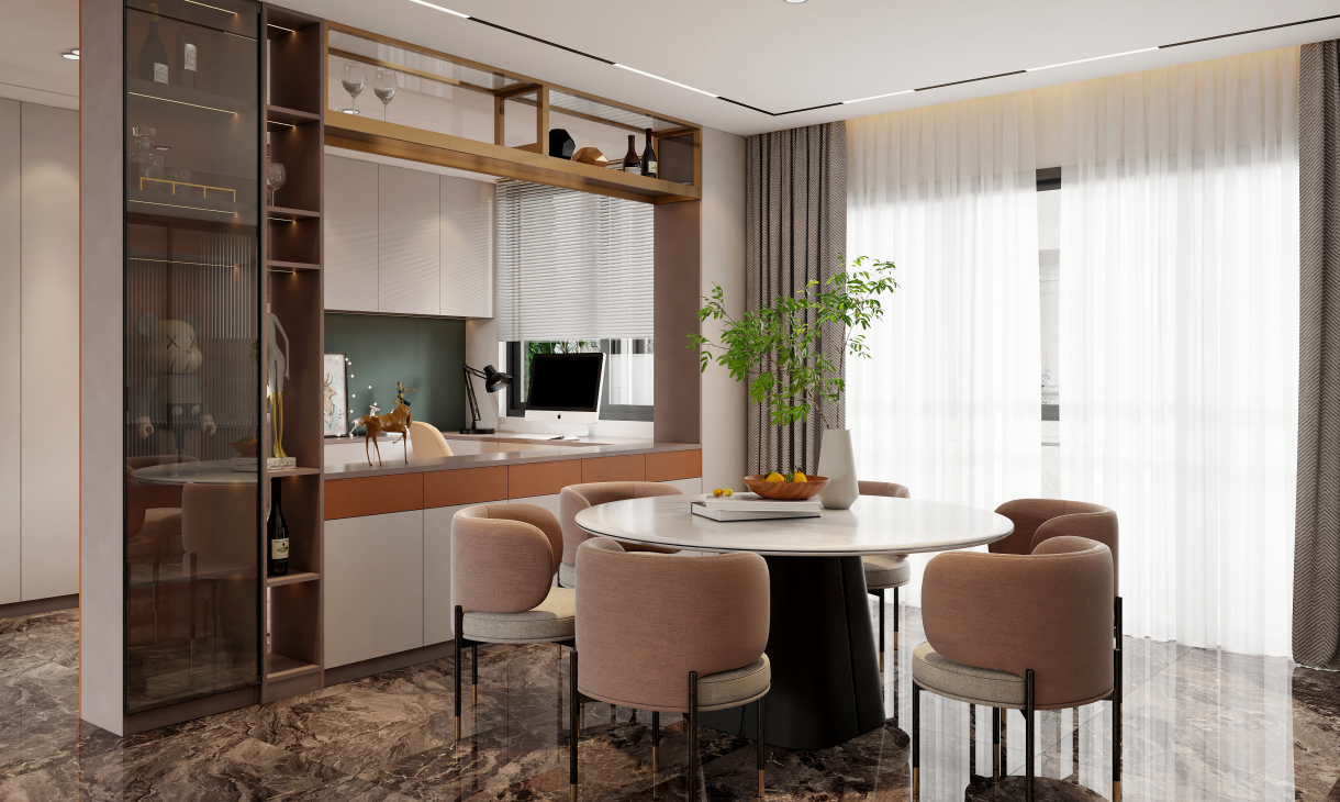 每個空間至少2張效果圖+1張全案全景圖展示,方案描述完整,所有空間需命名。