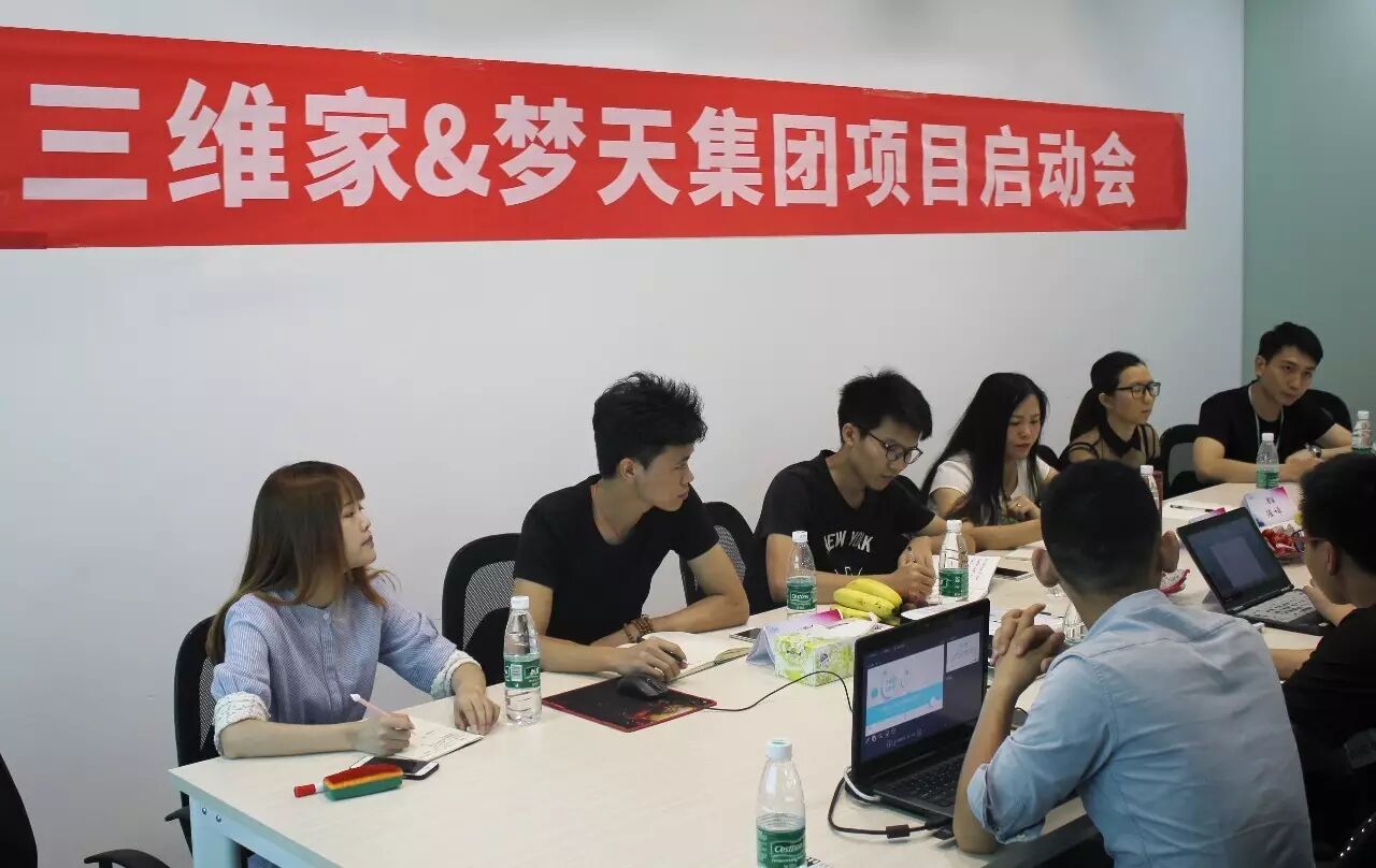 2017年6月27日上午9點,夢天木門集團&三維家合作項目正式啟動,就項目實施落地,終端推行、培訓落地等合作內容進行洽談。